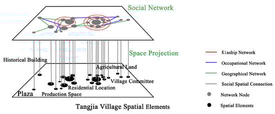 First, the social relationship data is used to construct a binary adjacency matrix. In this process, the spatial elements, social subjects, social relationships, and spatial connections of Tangjia Village in 2001, 2011, and 2021 are compiled into a network structure consisting of nodes and edges [33,34].