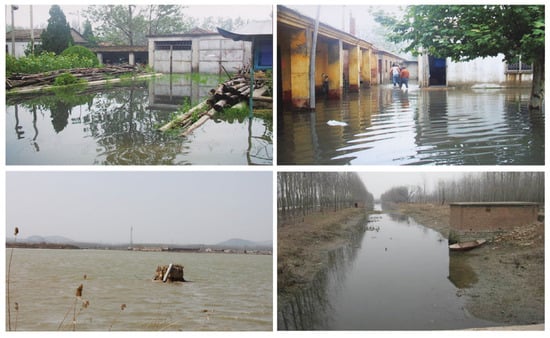 From 2001, the Xuzhou Municipal Committee and the People’s Government initiated a comprehensive remediation project for the coal mining subsidence area to address the severe ecological environment and prominent human–land conflicts. The project involved deepening and filling to transform the subsidence wetland areas into ponds for fisheries. During this period, the overall environment of the subsidence wetland was chaotic, with sparse vegetation. Some shallow water-accumulated areas had overgrown weeds in summer and dust in dry seasons due to soil compaction (Figure 3). The locals described the environment as muddy in the rain and dusty in the sun.