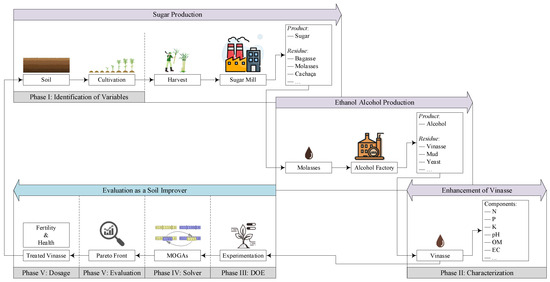 - Phase VI: Dosage. The last phase considered the determination of the factors and their variables, which have a significant effect as improvers on soil fertility, quality, and health and can contribute to improving sugarcane yield.
