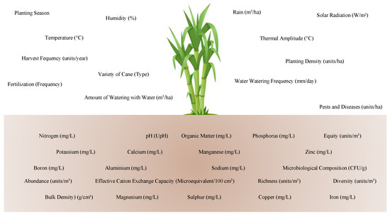 It is currently recognized that multiple variables influence sugarcane growth (see Figure 3); that is why identifying the significant variables that influence the soil for sugarcane cultivation becomes necessary.