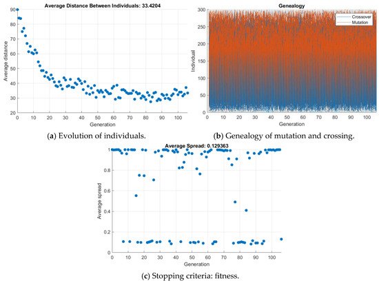 MOGA is an effective approach to solving optimization problems with multiple objectives [39] as a Genetic Algorithm is a metaheuristic search technique [40]. The real problems are not mono-criteria but multicriteria, where it is desired to improve more than one objective function at the same time as another or others, without affecting them. The goal of multi-objective optimization problems is to find the possible trade-offs of the conflicting target functions; it is difficult to choose one, so a general solution is to determine the set of optimal Pareto solutions [41].
