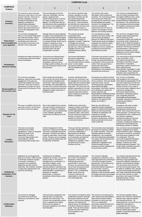 Figure 4. The COMPASS framework of urban commons governance evaluation scale.