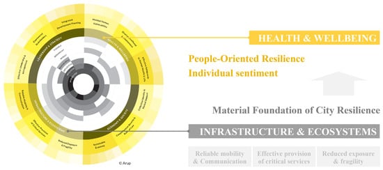 Recent studies have gradually shifted towards the exploration of people-oriented resilience in the field of urban resilience research. Individuals have different reactions to the same negative event, which poses challenges to the formulation of targeted and efficient strategies and actions in emergency management. Sentiment, as the result of an individual’s comprehensive perception of external stimuli, provides an important indicator for resilience assessment by analyzing the patterns of sentiment distribution during disasters. In addition, urban sentiment evaluated based on big data can weaken the influence of individual factors, as well as reveal the supporting role of urban space as an overall system [].