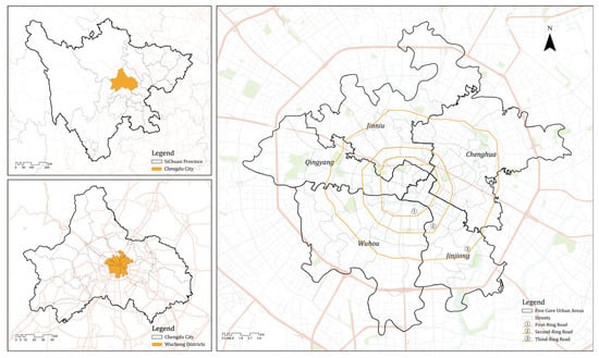 The study area, including the five core urban areas of Chengdu city.