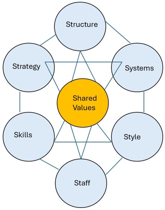 Figure 1). The 7S model posits that organisations, or organisational systems, succeed and perform well when all these factors align and mutually reinforce each other. Analysing where the factors do not align makes it possible to find causes for the controversies and contradictions and starting points for improving, regulating or re-engineering the organisational system.
