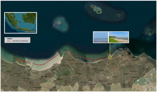 The sea fence spans approximately 30.16 kilometres along the coastal waters of six sub-districts and 17 villages within the Tangerang and Serang Regencies. Positioned about 200–500 m offshore, the barrier extends from Teluknaga to Kronjo. The surroundings primarily consist of swamps, fishponds and mangrove forests.