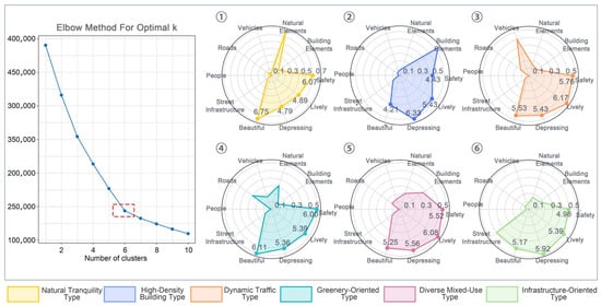From a pattern recognition perspective, this study goes beyond the limitations of analyzing isolated landscape elements. By applying K-means clustering [59], we identify recurring compositional patterns of salient landscape elements within SVIs. This allows for a nonlinear classification of street types and, in conjunction with perceptual scores, facilitates the evaluation of how different landscape compositions influence subjective environmental assessments.