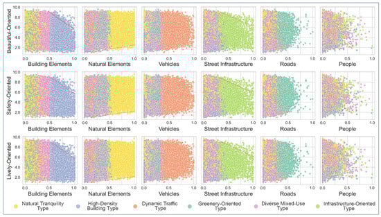 Additionally, the study extracted landscape combination features, which refer to the proportion and spatial arrangement of six key components in each SVI: building elements, natural elements, roads, street infrastructure, people, and vehicles.
