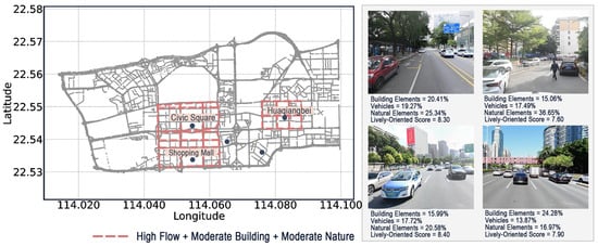 - Perception-oriented spatial strategy output: This study proposes targeted streetscape layout optimization strategies based on different perceptual goals (such as beauty, safety, and liveliness). These differentiated strategies offer practical and quantifiable guidance for urban design.