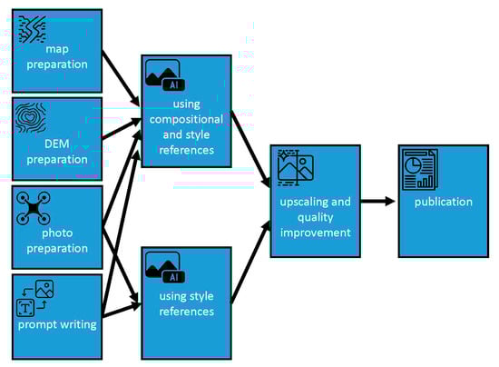 However, these applications are not widely used among scientists for landscape visualization, because they require in-depth software knowledge. The complexity of these tools exceeds the skill set of most researchers, and the workflow demands more research time (level of effort—LoE) than is typically allocated for visualization. One alternative is to commission studios or artists to create striking images or short films based on the researcher’s guidance, with some studios specializing in archaeological landscape reconstructions. Yet, the demand for illustrations and graphic designers surpasses what traditional means can supply. AI offers a cost-effective and rapid technology for visualization. Generating landscape images with the latest AI applications is not inherently difficult; even users with minimal experience can create visually impressive yet artificial ‘nature photographs’ within minutes. Social media is already flooded with AI-generated pseudo-landscapes, and some nature photography websites occasionally feature such images, which is considered an unethical practice, as they are not genuine nature photographs.