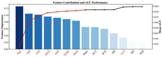 Relationship between feature contribution and the AUC performance of LightGBM.