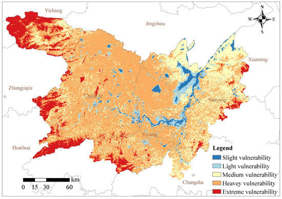 As a key ecological security barrier in the middle reaches of the Yangtze River and a wetland of international importance, the Dongting Lake region plays a critical role in maintaining biodiversity and supporting the sustainable development of the Yangtze River Economic Belt. In recent years, under the compound stress of climate change, land reclamation, and hydraulic engineering, the region has faced increasingly severe ecological issues, including wetland degradation and disrupted hydrological regimes, leading to significantly heightened ecological vulnerability [1,2,3]. Scientifically assessing the spatial heterogeneity of ecological vulnerability and accurately identifying its driving mechanisms has become a pressing need in implementing the strategy of “ecological priority and green development” in the Yangtze River Economic Belt.