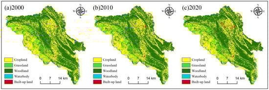 Figure 4. Spatial distribution of land use types in Guanling County, 2000–2020.