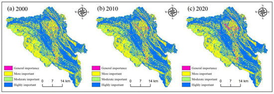 Figure 8. Spatial Distribution of the Importance Grades of Habitat Quality in Guanling County from 2000 to 2020.