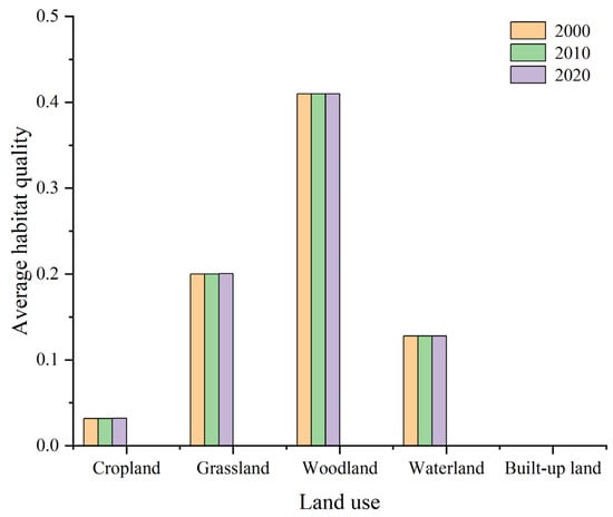 The study used the spatial examination tools of ArcGIS 10.8 software to statistically analyze the average quality of ecological habitats across different land utilization/cover types in Guanling County. As shown in Table 9 and Figure 9.