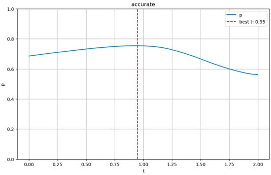 The slope plot of the thermal curve illustrates the rate of change in pedestrian flow over time, providing a clear visualization of the increase or decrease in pedestrian flow. Considering the difficulty of obtaining business hours for a wide range and multiple types of blocks in reality, this study uses thermal data as a proxy variable for block business hours on a theoretical basis: crowd activity, to a certain extent, reflects the opening status and service hours of block functions. Especially in commercial and public service land, the entry and stay of the crowd are usually closely associated with the activation of functions. Therefore, by identifying the starting and ending times of crowd activity intensity, the possible opening hours of block functions can be inferred. Specifically, when a land use enters or exits its business state, it is typically accompanied by rapid changes in crowd activity, reflected as significant fluctuations in the slope of the thermal intensity curve. Therefore, this study constructs a slope curve using the first-order difference of the thermal data, identifying the local maxima of the slope as opening times and the local minima as closing times. However, due to transient fluctuations, noise, and outliers present in the thermal data, a reasonable slope threshold must be established to exclude insignificant changes and thus avoid misclassification. In this study, based on the principle of statistical distribution, the threshold interval for the slope curve was constructed using the mean plus or minus K times the variance. Among them, some AOI sample data used in this study provide explicit business hour labels, based on which this paper conducts parameter training and fitting. Specifically, the 24 h period is broken down into hour-by-hour business states, the K value is continuously adjusted, and the overall recognition accuracy is calculated by comparing the predicted hourly business status with the ground truth labels. The K value corresponding to the optimal prediction accuracy is ultimately selected as the criterion for setting the slope threshold. The results indicate that the accuracy of business hour identification reaches a maximum of 75.37% when K ≈ 0.95 (Figure 3). Accordingly, the slope threshold is uniformly set as the mean slope plus or minus 0.95 times the variance.