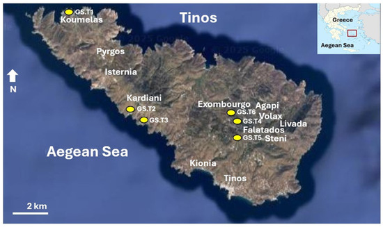 - Leivaditis, G.; Alexouli-Leivaditi, A. Geomorphology of the island of Tinos. Bull. Geol. Soc. Greece 2001, 34, 389–396. [Google Scholar] [CrossRef][Green Version]