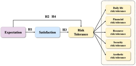 In this study, we integrate the proposed theoretical framework into the research on risk tolerance concerning the transformation of child-friendly communities in high-density urban areas. We have developed a model incorporating “Expectation, Satisfaction, and Risk Tolerance” to investigate how residents accept risks associated with these transformations. Consequently, we propose the following hypotheses, as depicted in Figure 1.