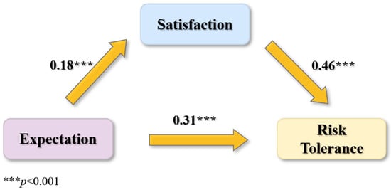 To more intuitively describe the relationship between satisfaction, expectation, and tolerance, the empirical results of the variable path relationships are presented in Figure 4. Residents’ expectations have a positive impact on tolerance, and satisfaction also has a positive impact on tolerance. Therefore, it confirms the validity of H1: expectations have a significant impact on satisfaction; H2: expectations have a significant impact on RT; and H3: satisfaction has a significant impact on RT.