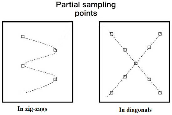 Figure 2. Soil-sampling schemes: zig-zags and diagonal patterns.