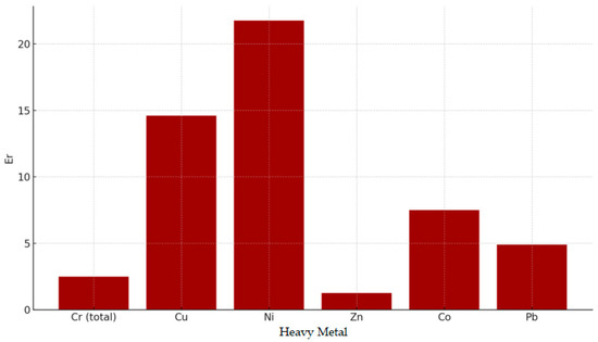 Integrated ecological risk assessment (Er) reveals that Ni and Cu pose the highest potential threats to local biota, reinforcing the need for focused mitigation strategies.