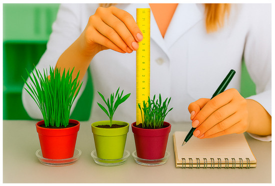 Mustard (Brassica spp.), wheat (Triticum aestivum), and marigold (Calendula officinalis) consistently exhibited high germination rates (90–96%) and average shoot heights of 4.0–6.0 cm in the contaminated soil, with densities exceeding 1.8 plants cm−2. Their robust establishment under metal stress confirms their suitability for phytoextraction (mustards), phytostabilisation (wheat), and hyperaccumulation (marigold). Aspect illustrated in Figure 11, Figure 12 and Figure 13.