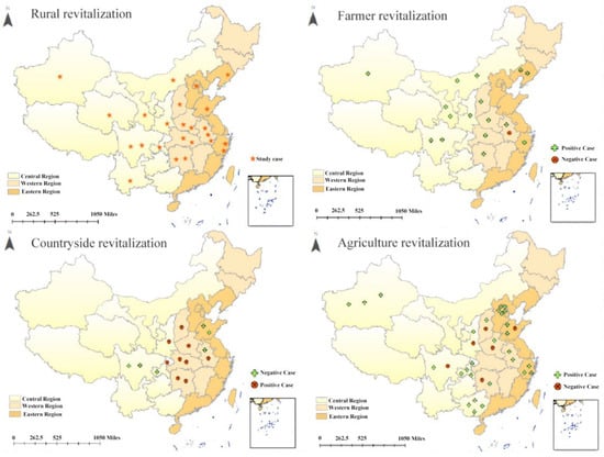 The rural revitalization effects of land transfer demonstrate significant geographical differentiation (Figure 5). Central China, identified as a research hotspot, is the subject of nine articles focusing on land transfer. In this region, agricultural resource endowments and policy support create a synergistic effect: its rich agricultural ecological foundation renders it an ideal location for the development of diversified agricultural product cultivation and breeding. Government subsidies and an improved market system have driven positive interactions between land transfer and agricultural upgrading [35]. The rural revitalization case underscores the governance risks in Central China and its surrounding areas, whereas the negatively correlated cases concentrated in the Central China Plain reveal the potential decline in ecological carrying capacity and the increase in social conflicts resulting from excessive scale expansion. This suggests that in advancing land transfer in Central China, it is essential to focus on the governance of the ecological environment and sustainability, ensure the effective protection of farmers’ rights, and address the social conflicts arising from land transfer.