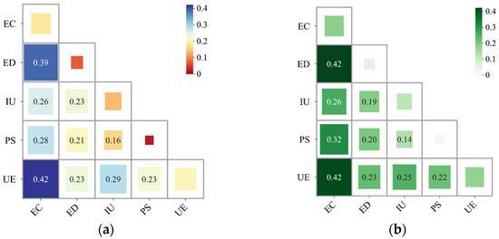 Additionally, shifts in energy structure, particularly the increased share of clean energy, have long-term positive effects on improving the environmental benefits of land use. Studies have found that reducing energy consumption can effectively mitigate mercury pollution and its impacts [21]. Assessments of the influence of energy intensity on environmental quality in the Beijing–Tianjin–Hebei region reveal that the growth in carbon emissions from 2005 to 2015 was primarily attributed to changes in energy intensity [22].