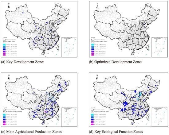 | Key Development Zones | Massive urbanization and industrialization | Food production, ecological construction, etc. | Regions with ample carrying capacity and rapid potential for industrialization and urbanization, designated as “potential areas”. | Emphasis on economic scale growth |