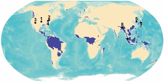 - Balamurugan, G. Tin mining and sediment supply in peninsular malaysia with special reference to the Kelang River Basin. Environmentalist 1991, 11, 281–291. [Google Scholar] [CrossRef]