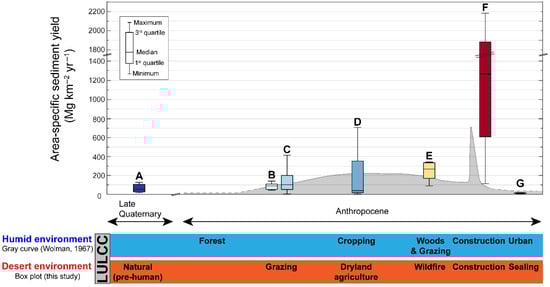 - Reusser, L.; Bierman, P.; Rood, D. Quantifying human impacts on rates of erosion and sediment transport at a landscape scale. Geology 2015, 43, 171–174. [Google Scholar] [CrossRef]