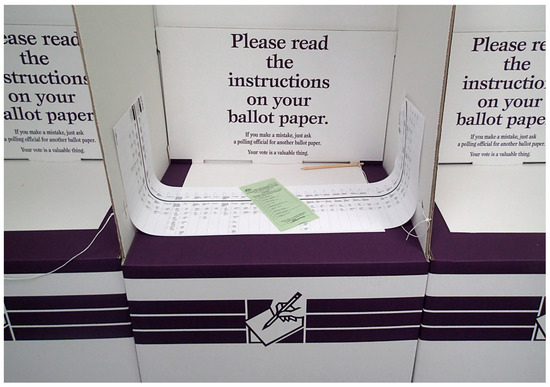 - Dick, S. AEC Draws Order of Candidates on Federal Election Ballot Papers Using Blindfolds, Bingo-Like System. 11 April 2025. Available online: https://www.abc.net.au/news/2025-04-11/aec-draws-ballots-federal-election-2025/105165884 (accessed on 20 July 2025).