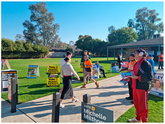 - Australian Electoral Commission. Voter’s Guide: Communication Channels Catalogue. 31 January 2025. Available online: https://www.aec.gov.au/About_AEC/voters-guide-campaign-channels.htm (accessed on 5 May 2025).