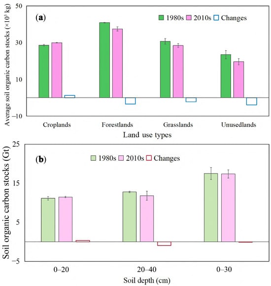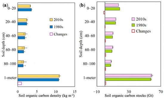 3.3. Spatial–Temporal Variation in Soil Carbon Stocks
