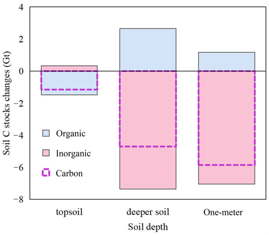 4.4. Soil Inorganic Carbon Stock Losses Dominated Deeper Soil Carbon Sources