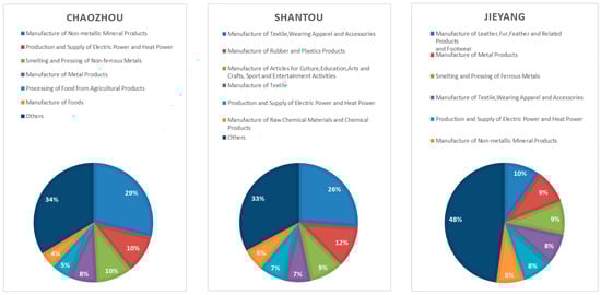 Major industries in each prefectural-level city based on the proportion in the gross industry output value (the industry added value in Jieyang). (Source: Statistical Yearbooks for each prefectural-level city).