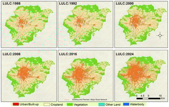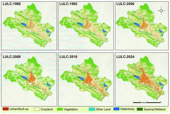 LULC map of Kathmandu valley in 1988–2024. LULC 1988 and 2008 data were used from Sarif et al., 2020 [28].