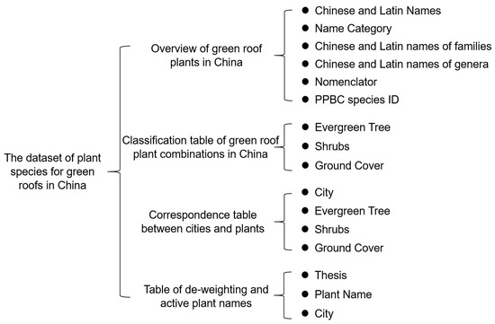 The dataset in China presents the names and categories of green roof plants in different regions of China, along with their corresponding cities. The creation process is shown in Figure 2.