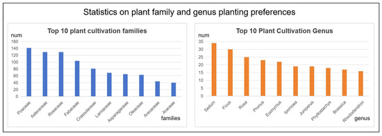 Statistics on plant family and genus planting preferences.