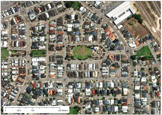 Land surface temperature maps were generated for all Australian cities using Landsat 8 thermal infrared sensor (TIRS) band 10 data over the summer of 2018–2019 []. Land surface temperatures were collected for Perth on the 14 December 2018 and the 21 January 2019; both dates were cloud-free and had maximum temperatures of 39.1 °C and 29.8 °C, respectively [].