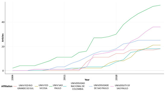 The University of São Paulo (USP) shows unparalleled dominance in regional research output. Its accelerated expansion after 2010 reflects strategic investments in graduate education, specialized research centers, and international partnerships. This growth curve confirms USP’s position as a regional powerhouse and illustrates how institutional support can amplify scientific productivity.