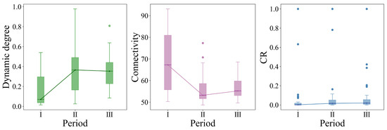 From the perspective of quantity, the median of the dynamic degree was 0.0704 during the period from 1990 to 2000, increased significantly by 418.4% to 0.365 during the period from 2000 to 2010, and declined slightly but remained at a relatively high level during the period from 2010 to 2020. Over the 30 years from 1990 to 2020, the dynamic degree had generally increased by 401.4%, indicating that the conversion of MGL to non-grain uses in the BR region had accelerated dramatically. The dynamic degree reached its peak during the period from 2000 to 2010, which is consistent with the fact that the land urbanization rate of the BR region increased continuously during these ten years. The dynamic rate of the BR region shows significant spatial differences and is characterized by expansion from the coastal areas around the Bohai Bay to the hinterlands, forming a broad spatial pattern with the Bohai Bay as the core and extending to the north, west, and south. In terms of landscape pattern, the median of connectivity was 65.23 during the period from 1990 to 2000, decreased to 53.2 during the period from 2000 to 2010, and increased to 55.19 during the period from 2010 to 2020. During the period from 1990 to 2020, the overall connectivity decreased by 15.4%. A possible reason for this trend could be that dense and contiguous MGL was mostly concentrated in the early stage, and with the progress of urbanization, MGL became increasingly fragmented over time, leading to subsequent changes in land use based on fragmented MGL. The connectivity index of the BR region exhibits significant spatial differences and is characterized by an overall shift of focus to the south. In terms of quality, from 1990 to 2020, the median of CR increased steadily during the period from 1990 to 2020. The high CR values of the BR region have been distributed near Beijing and the Bohai Economic Rim (BER) at all times (Figure 6 and Figure 7).