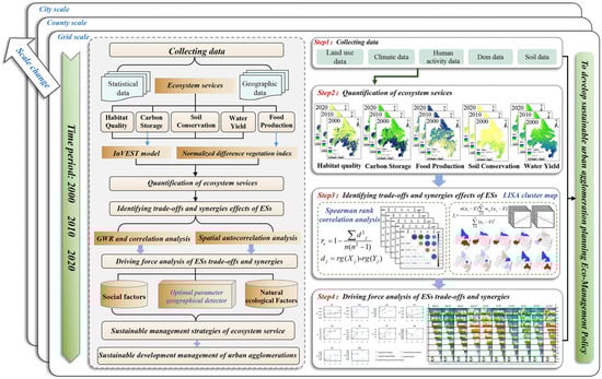 - Huang, Y.; Wu, J. Spatial and temporal driving mechanisms of ecosystem service trade-off/synergy in national key urban agglomerations: A case study of the Yangtze River Delta urban agglomeration in China. Ecol. Indic. 2023, 154, 110800. [Google Scholar] [CrossRef]