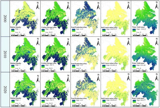 | Year | Habitat Quality | Carbon Storage (t) | Food Production (t) | Soil Conservation (t) | Water Yield (t) |