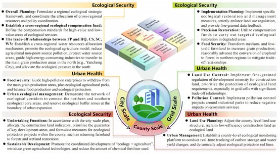 - At the city scale, the trade-offs and synergies among the ESs showed a strengthening trend. Obvious spatial aggregation was observed in the northern and southeastern parts of the study area. The interaction of socio-ecological factors had significantly intensified, with all of the q values exceeding 0.11, indicating that formulating cross-scale ecosystem management strategies requires comprehensive consideration of both natural environmental and socio-economic factors.