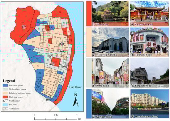 Graded map of layering characteristics in the historic landscapes of Chaozhou Ancient City. (Source: self-drawn by the author).