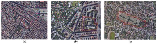 The categories were chosen based on several studies [29,30] and the researchers’ own experiences. Each one of the selected case study areas is located in one of the different types of urban environment: the Péterfy Sándor Street Hospital is located in the urban core zone, the National Centre for Spine Medicine in the transitional urban zone, and the Budafok Cemetery is located in the sub-urban residential zone.