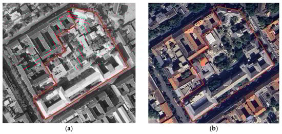 Another important criterion for the selection of the case study sites was the type of built-up structure within the lot. The cemeteries have a relatively uniform structure in terms of the built-up area and green space ratio, despite the fact that the green cover of the cemeteries is constantly changing due to the continuous burials, so the choice of the case study site was mainly determined by the location. For hospitals, we selected each of the two historically significant types of built-up areas: one having a pavilion structure (Péterfy Sándor Street Hospital) and the other one having a block building (National Centre for Spine Medicine) (Figure 2).
