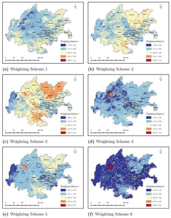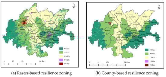 Accordingly, this study is guided by the following specific objectives: (1) to develop a multidimensional, GIS-based framework for assessing regional resilience that integrates urban, agricultural, and ecological dimensions; (2) to quantify and map the spatial heterogeneity and functional stratification of resilience across the CCEMR, with explicit identification of transitional and vulnerable zones; (3) to analyze the impact of different governance priorities and weighting schemes on resilience patterns, revealing policy-sensitive spatial mismatches; and (4) to translate resilience assessment results into actionable territorial spatial zoning recommendations, supporting adaptive governance and cross-jurisdictional coordination. These objectives provide a clear basis for evaluating the relevance and applicability of the results presented in this study.