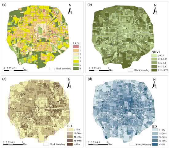 - Han, D.; An, H.; Wang, F.; Xu, X.; Qiao, Z.; Wang, M.; Sui, X.; Liang, S.; Hou, X.; Cai, H.; et al. Understanding Seasonal Contributions of Urban Morphology to Thermal Environment Based on Boosted Regression Tree Approach. Build. Environ. 2022, 226, 109770. [Google Scholar] [CrossRef]